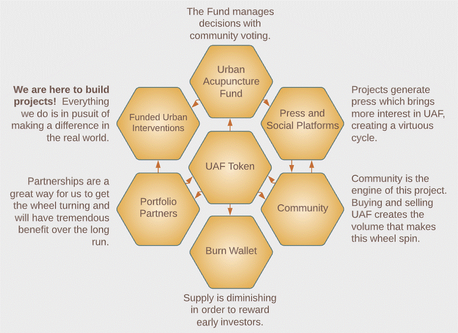 The project is born of a desire to break the traditional real estate model that is focused on maximizing returns for investors ahead of building for people and the planet. We can do better by raising and repaying capital as a community with the UAF token. The incentive then shifts to the creation of great places which will attract more interest UAF and allow us to build more great projects.